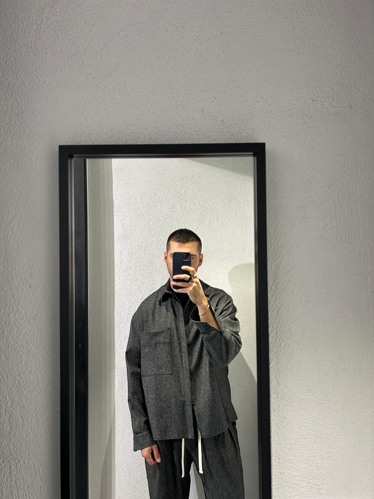 - Camicia dalla vestibilità comoda effetto flanella, leggermente stondata e più lunga sul retro con spacchetti laterali, fintone ricoperto e tascone lato cuore.