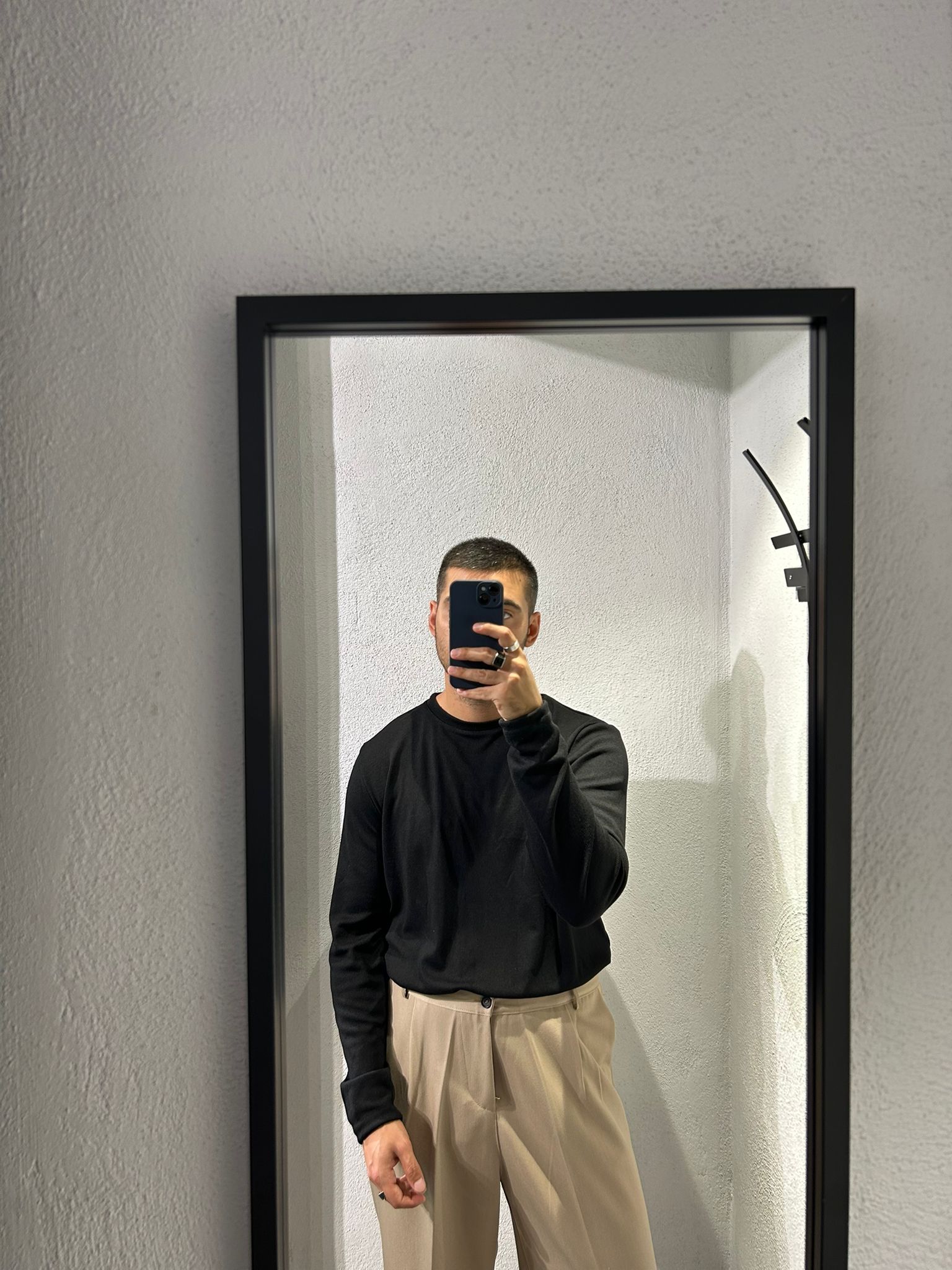 - T shirt dalla vestibilità slim/regular a manica lunga realizzata in cotone a costina.