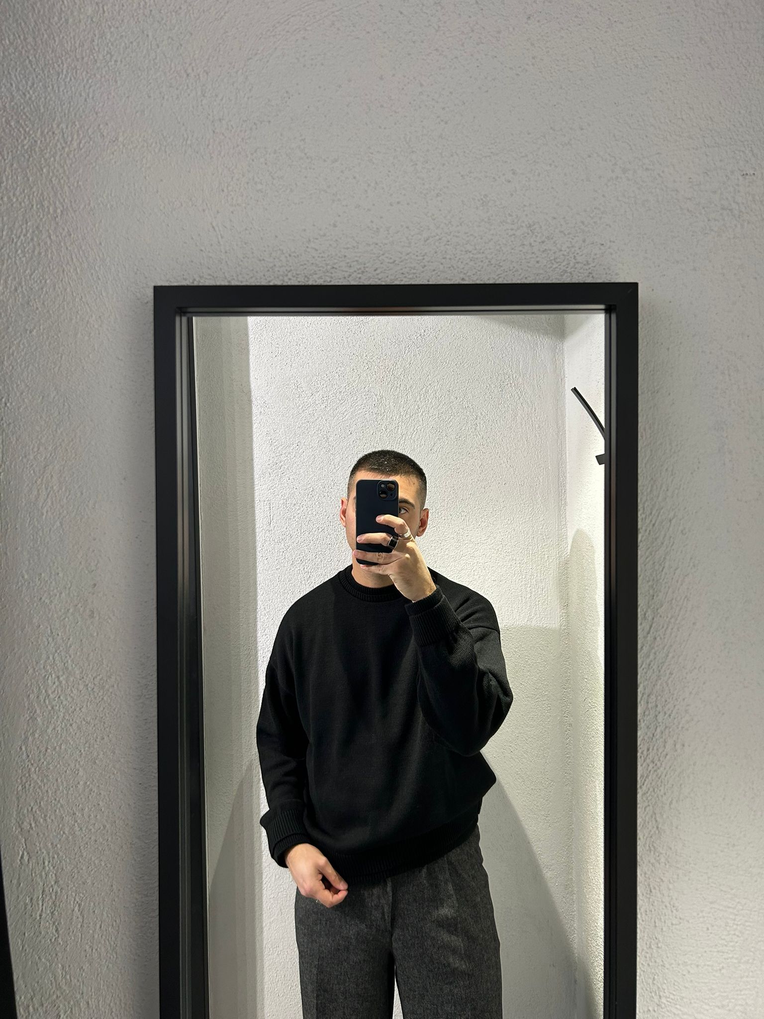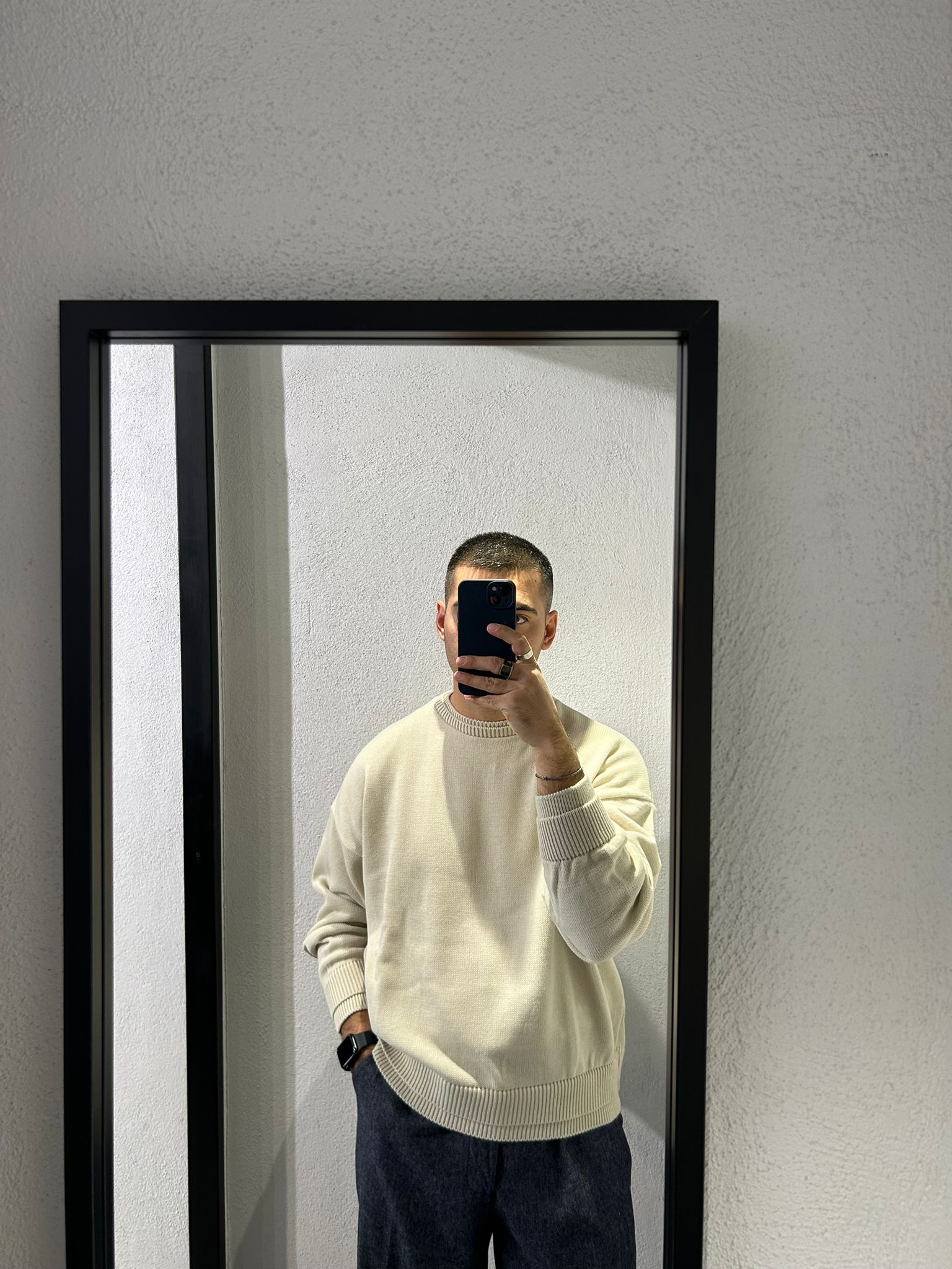 - Maglione dalla vestibilità comoda e corta con struttura doppiata su collo, fondo e polsini.