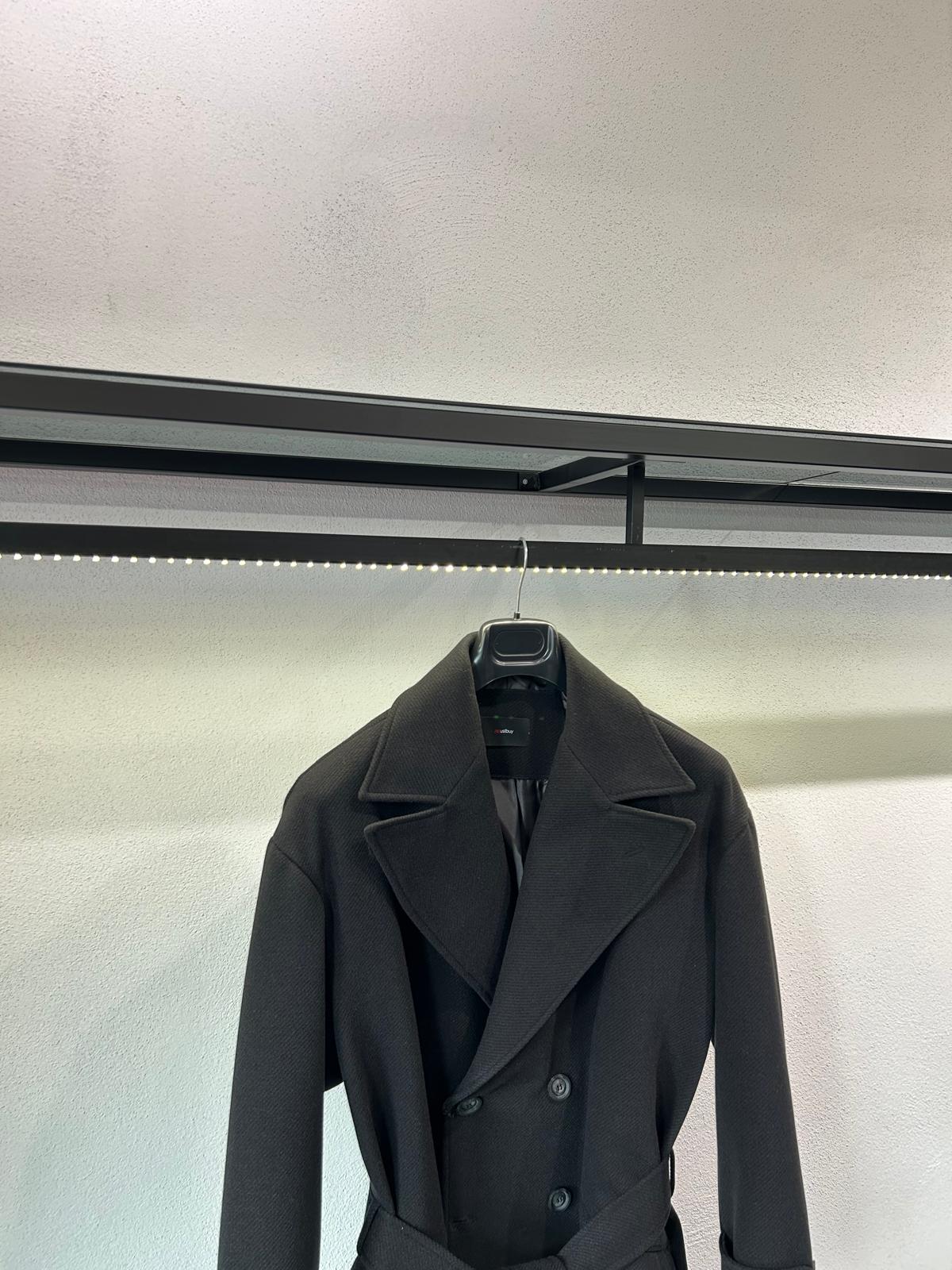 - Cappotto doppio petto dalla vestibilità comoda realizzato in tessuto panno diagonale, con chiusura sei bottoni, petto a lancia, cintura removibile e tasche a pattina.