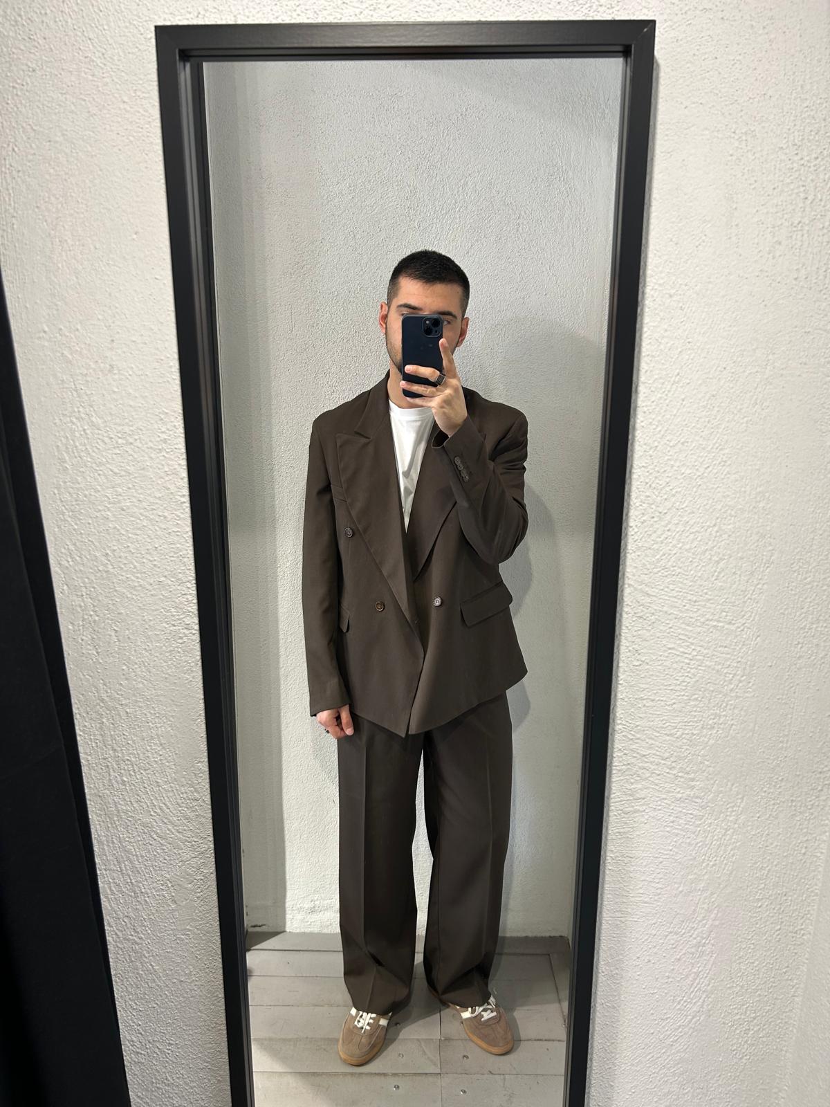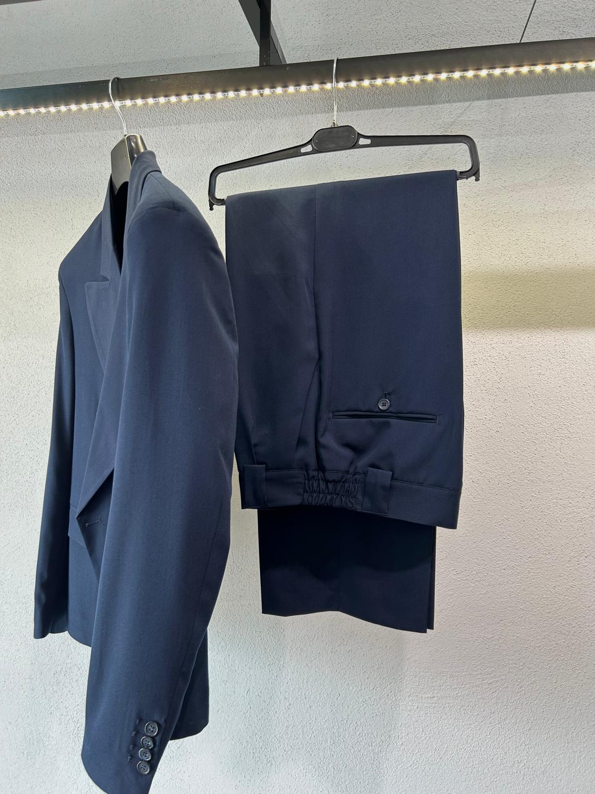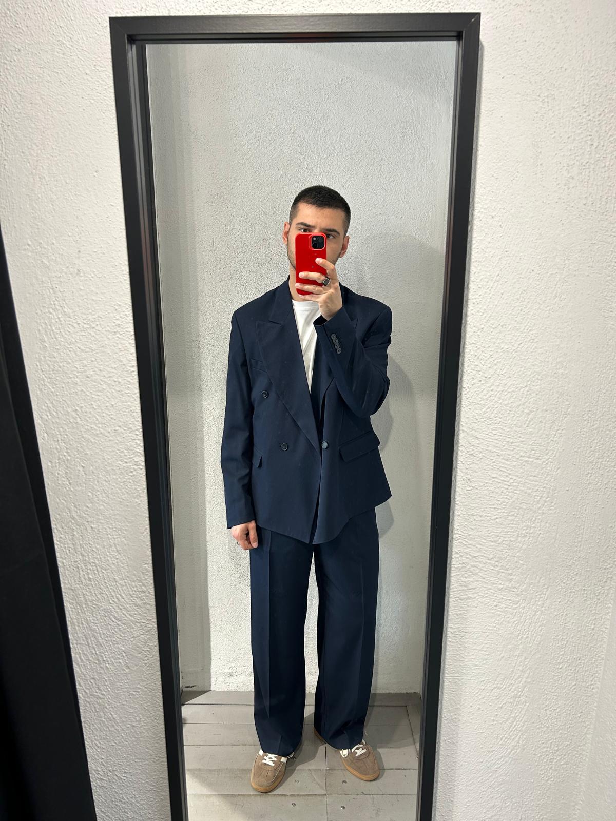 - Abito elegante con giacca doppio petto dal taglio comodo e pantalone fondo largo 25cm, abbottonatura con gancio nascosto ed elastici laterali per una vestibilità ottimale.