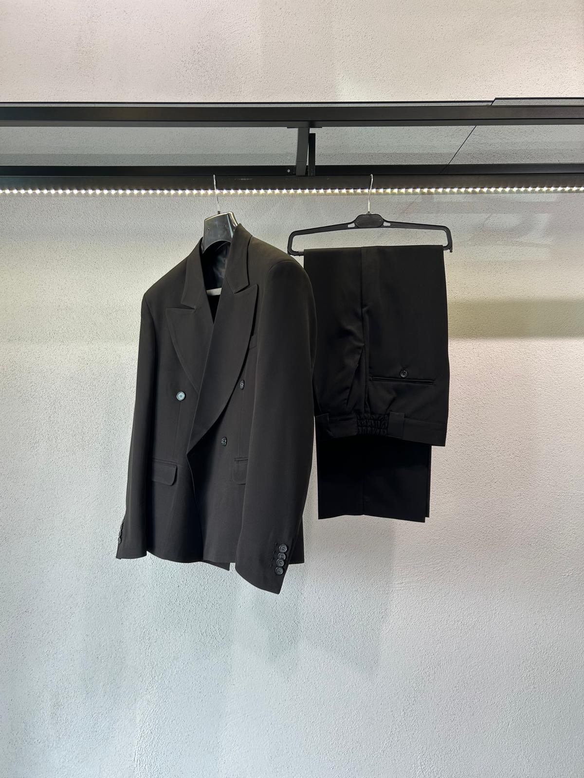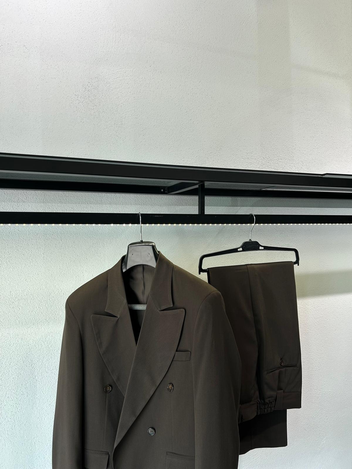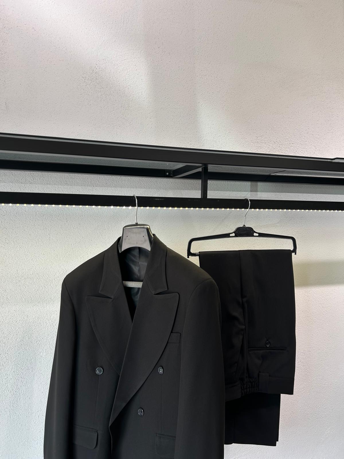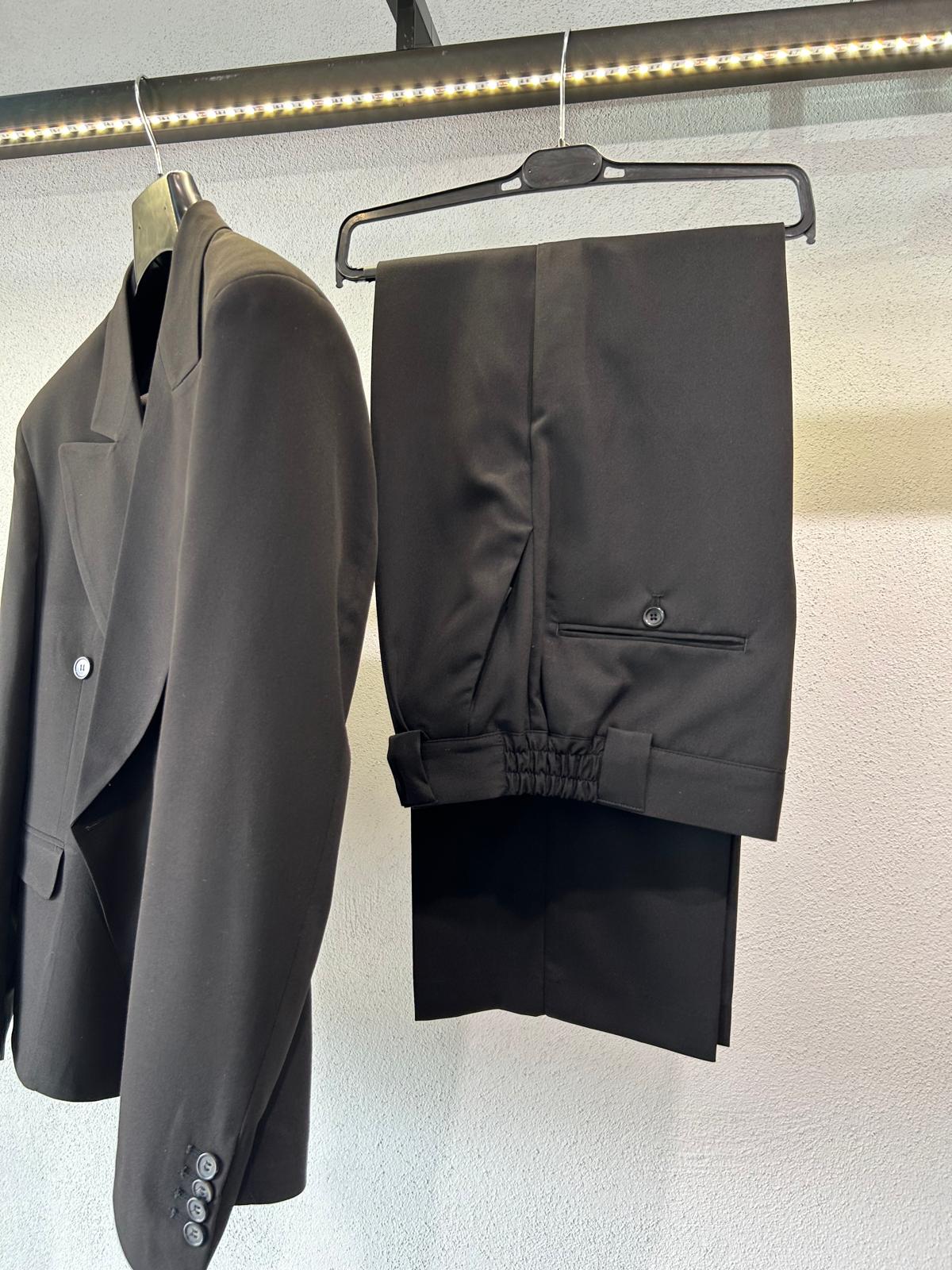 - Abito elegante con giacca doppio petto dal taglio comodo e pantalone fondo largo 25cm, abbottonatura con gancio nascosto ed elastici laterali per una vestibilità ottimale.
