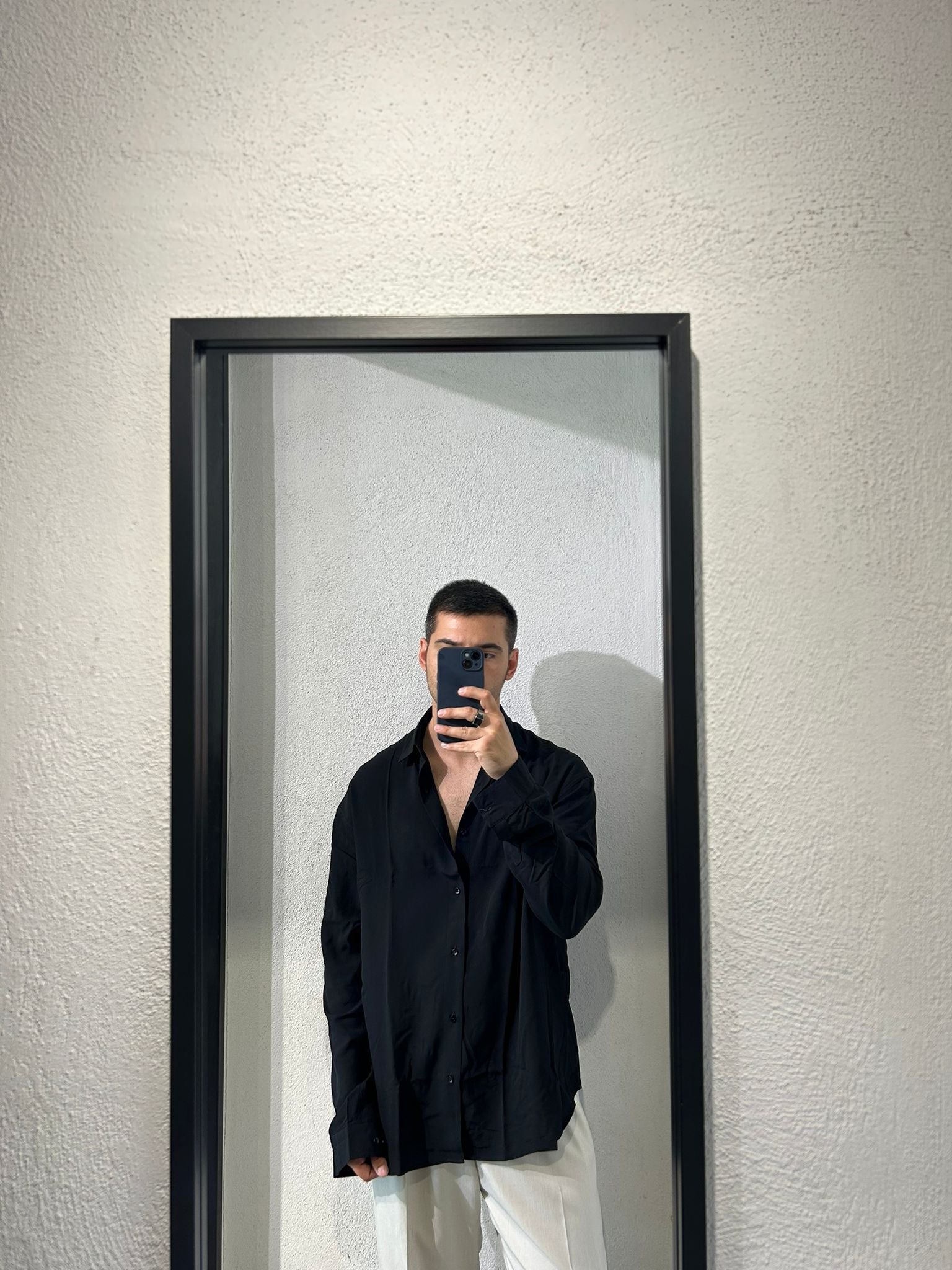 - Camicia dalla vestibilità oversize realizzata in tessuto viscosa con colletto alla francese.